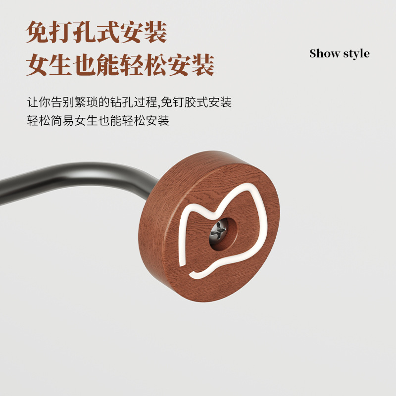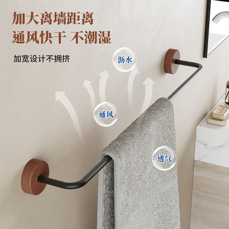 优质原木卫生间毛巾拖鞋架免打孔吸盘强力粘浴室毛巾浴巾挂杆单杆