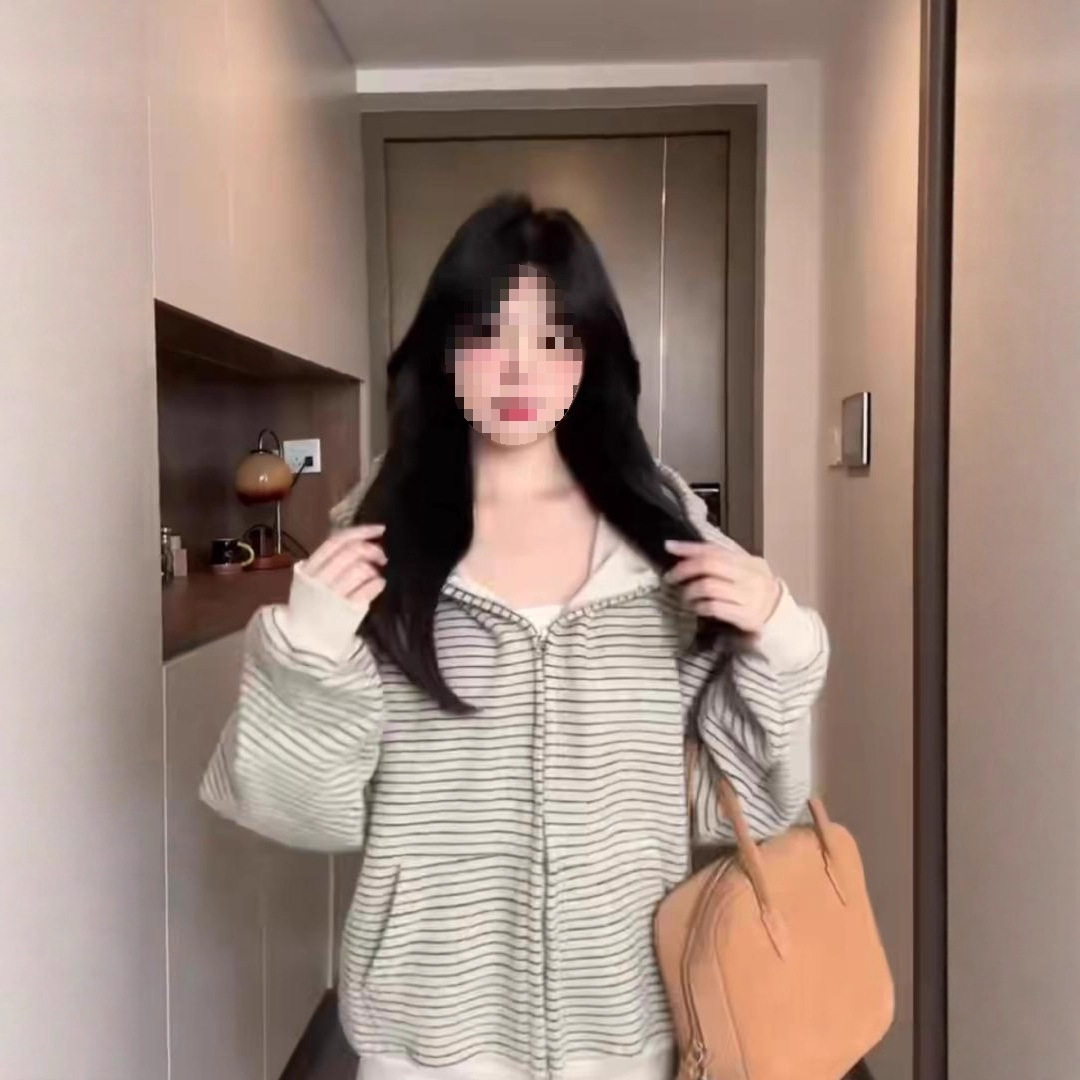 连帽卫衣外套女春秋季2025新款韩系慵懒拉链条纹开衫上衣早秋批发