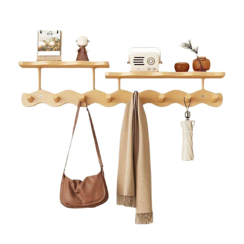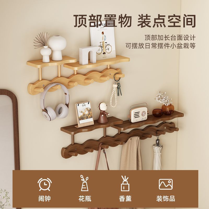 玄关波浪挂衣架墙上壁挂免打孔卧室门后钥匙收纳创意挂钩竹藤轻奢