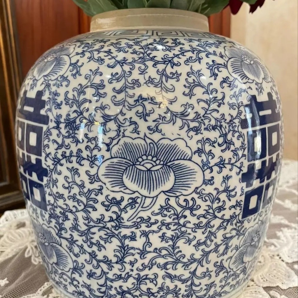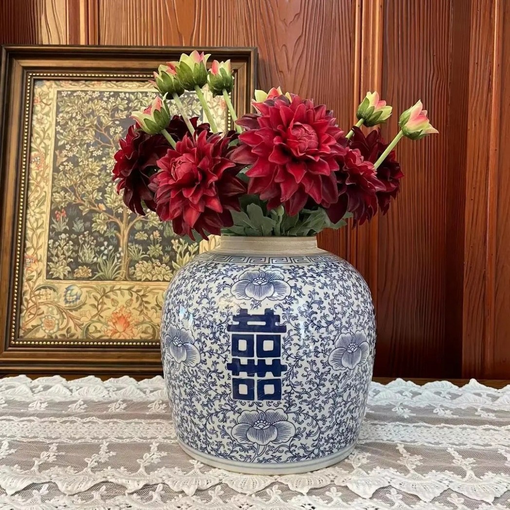 景德镇明清古典中式青花喜字系列陶瓷罐仿古做旧客厅玄关瓷器摆件