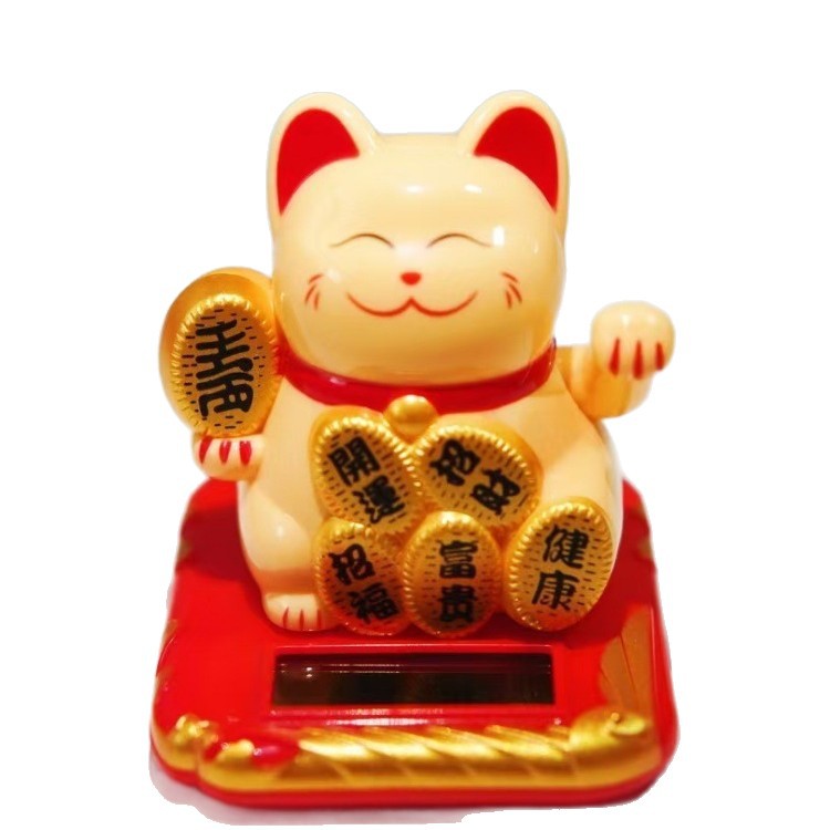 太阳能招财猫摆件自动招手店铺开业舞醒狮桌面装饰用品电动聚宝盆
