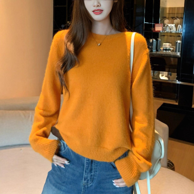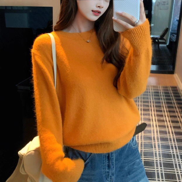 秋冬慵懒感橘色套头毛衣针织衫上衣韩版宽松圆领内搭打底衫女百搭