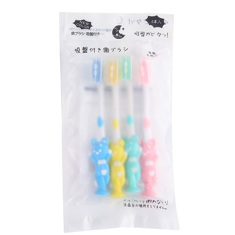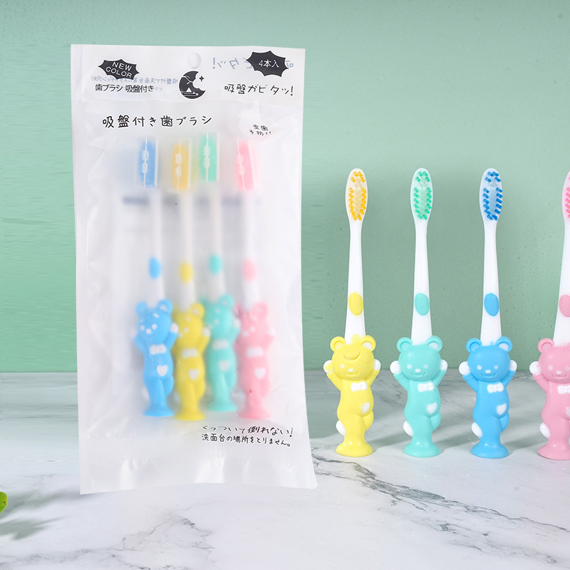 儿童卡通小熊袋装牙刷超市批发细软刷毛小孩卡通小熊手柄软毛牙刷