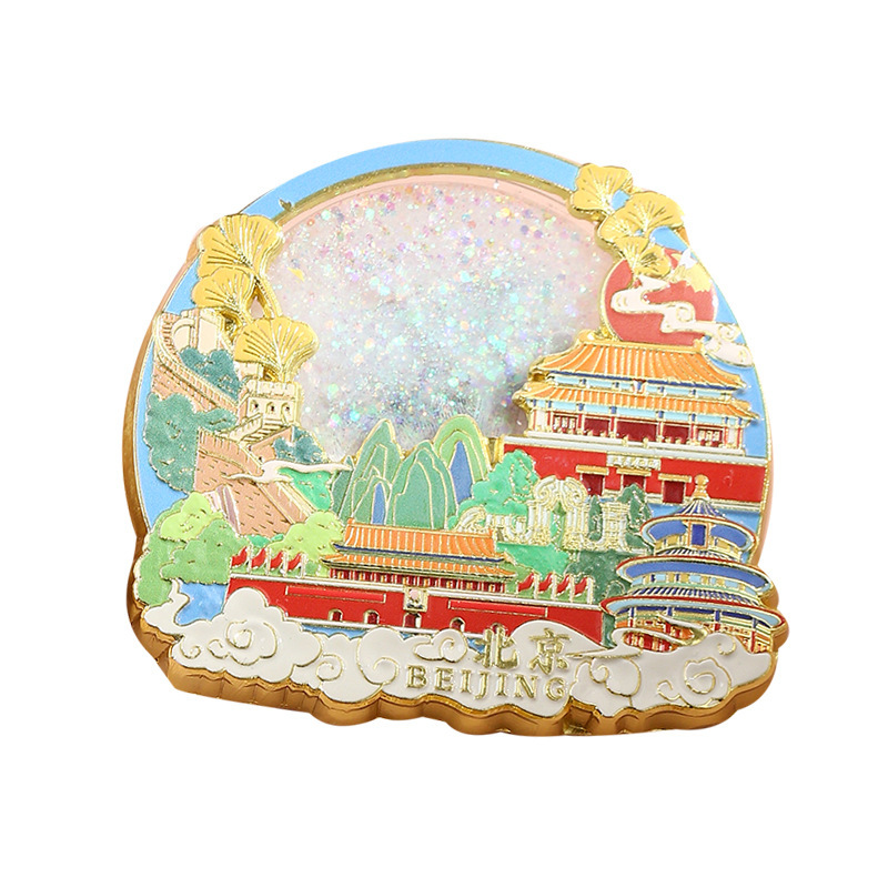 磁吸锌合金文创冰箱贴金属烤漆流沙地标冰箱贴城市景区景点冰箱贴
