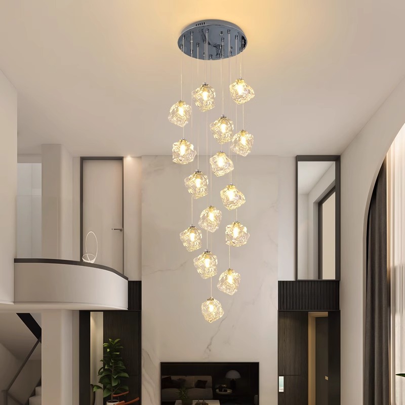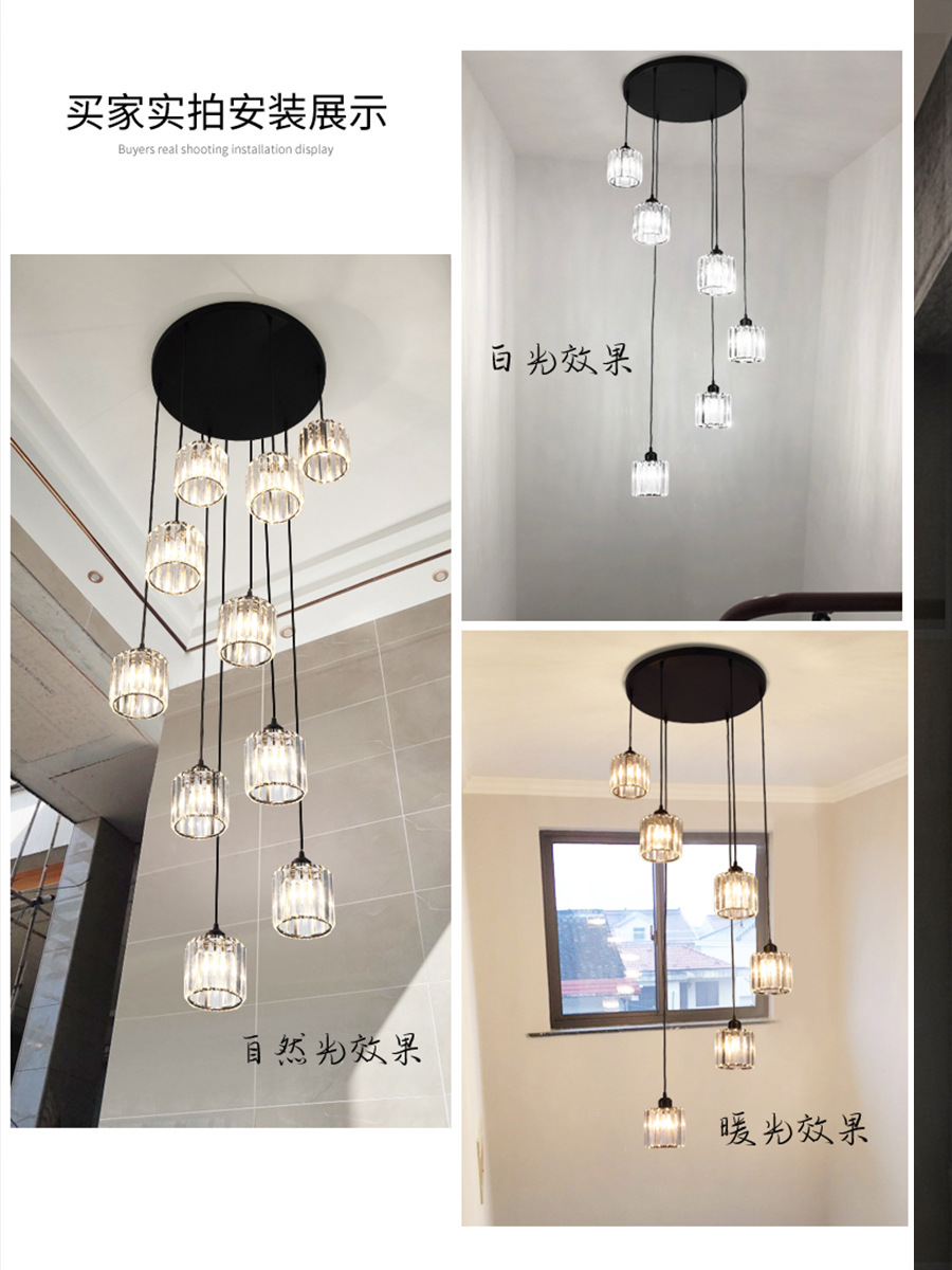 灯光颜色 | 冰块楼梯吊灯【护眼光源】8头款-三色变光 【35CM底盘1.5米吊线】 | | 灯光颜色 | 冰块楼梯吊灯【护眼光源】10头款-三色变光 【40CM底盘2米吊线】 |