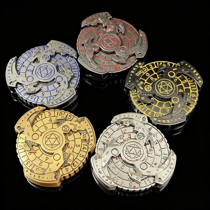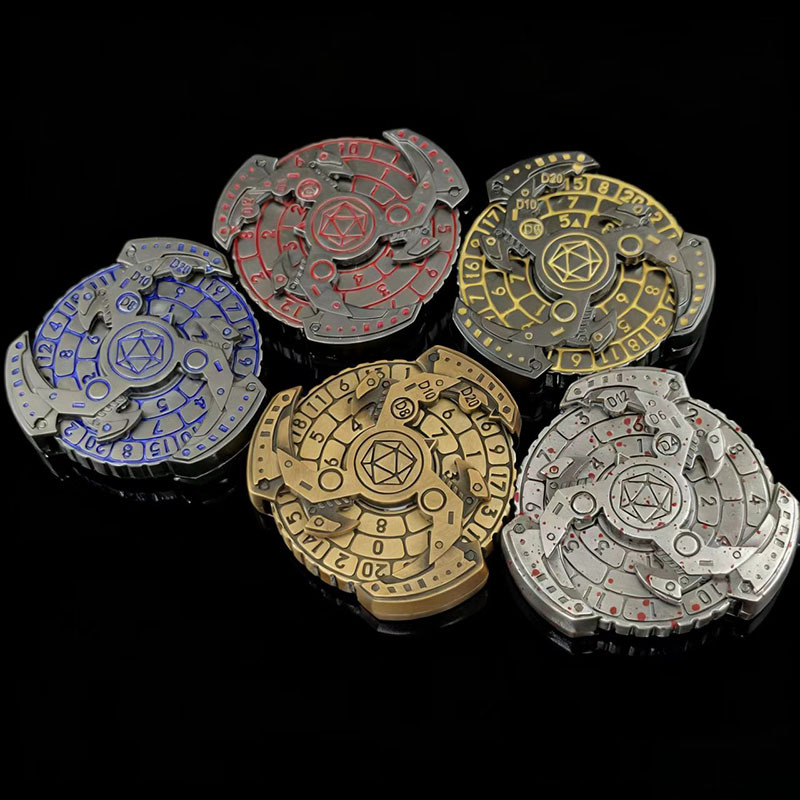 金属七合一骰子指尖陀螺转盘 DND龙与地下城旋转骰子 RPG角色扮演