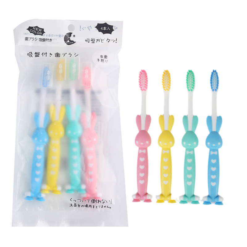 儿童卡通软毛牙刷超市批发4支袋装宝宝细软毛刷卡通小兔手柄牙刷