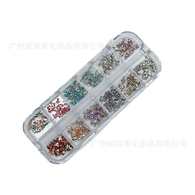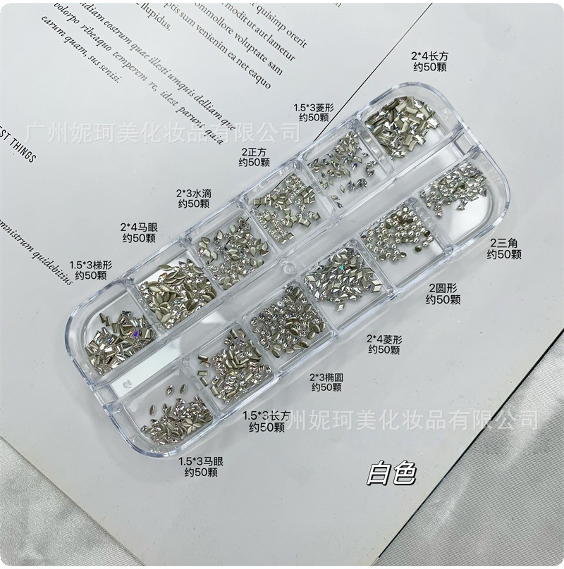 12格迷你倒边锆石平底异形美甲钻白色马眼尖底锆石大小圆形DIY钻
