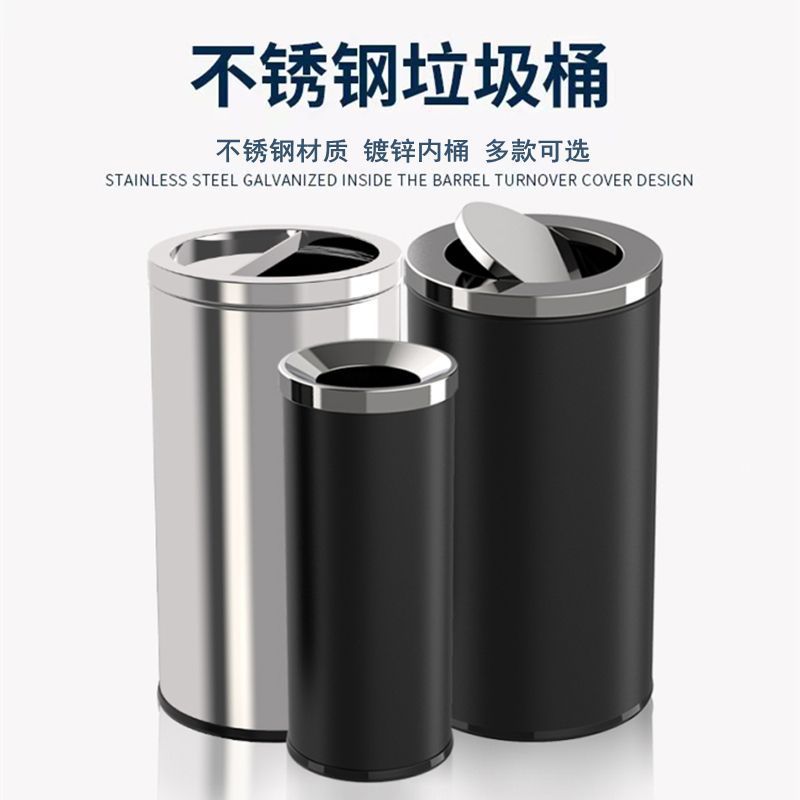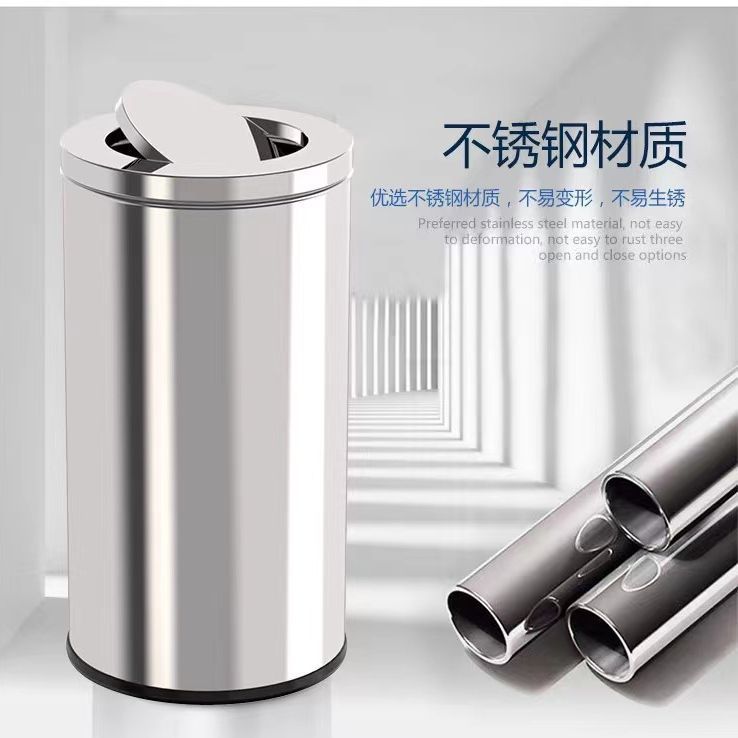港式垃圾桶不锈钢大堂立式圆形商场酒店翻盖办公室走廊商用电梯口