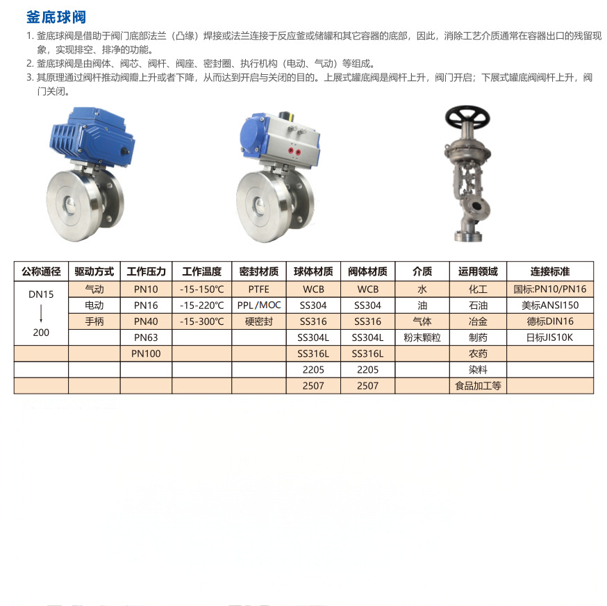 规格型号釜底球阀