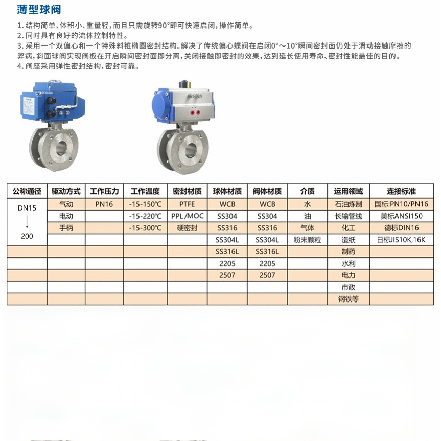 规格型号薄型球阀