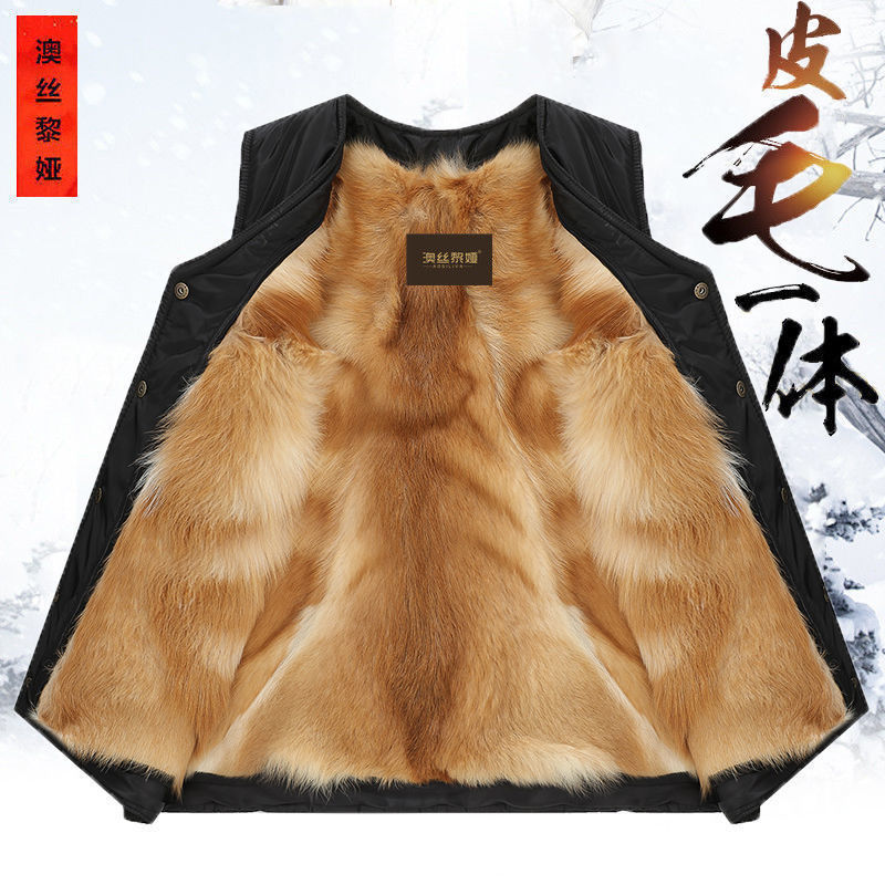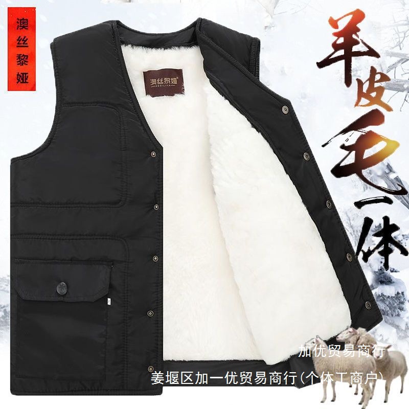 秋冬皮毛一体马甲中老年男羊毛背心加厚棉坎肩老人爸爸装批发