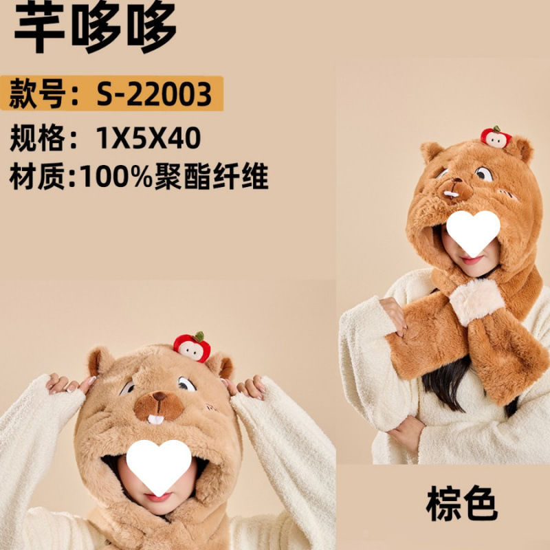 冬款宝宝帽子围巾保暖男女童包头帽可爱超萌儿童毛绒护耳源头工厂