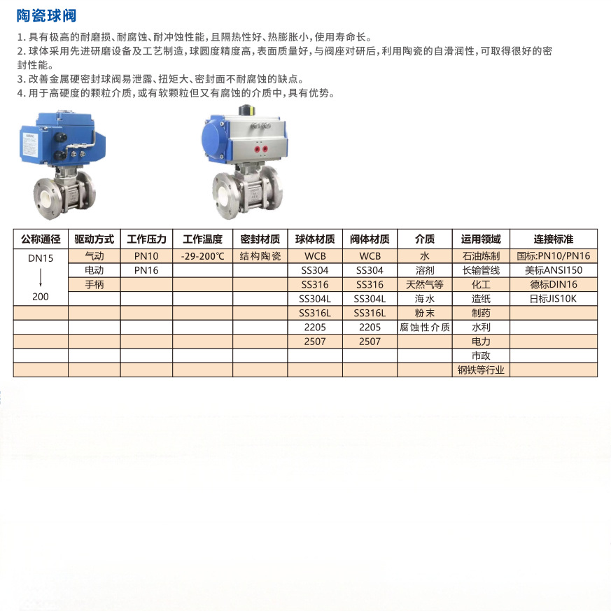 规格型号陶瓷球阀