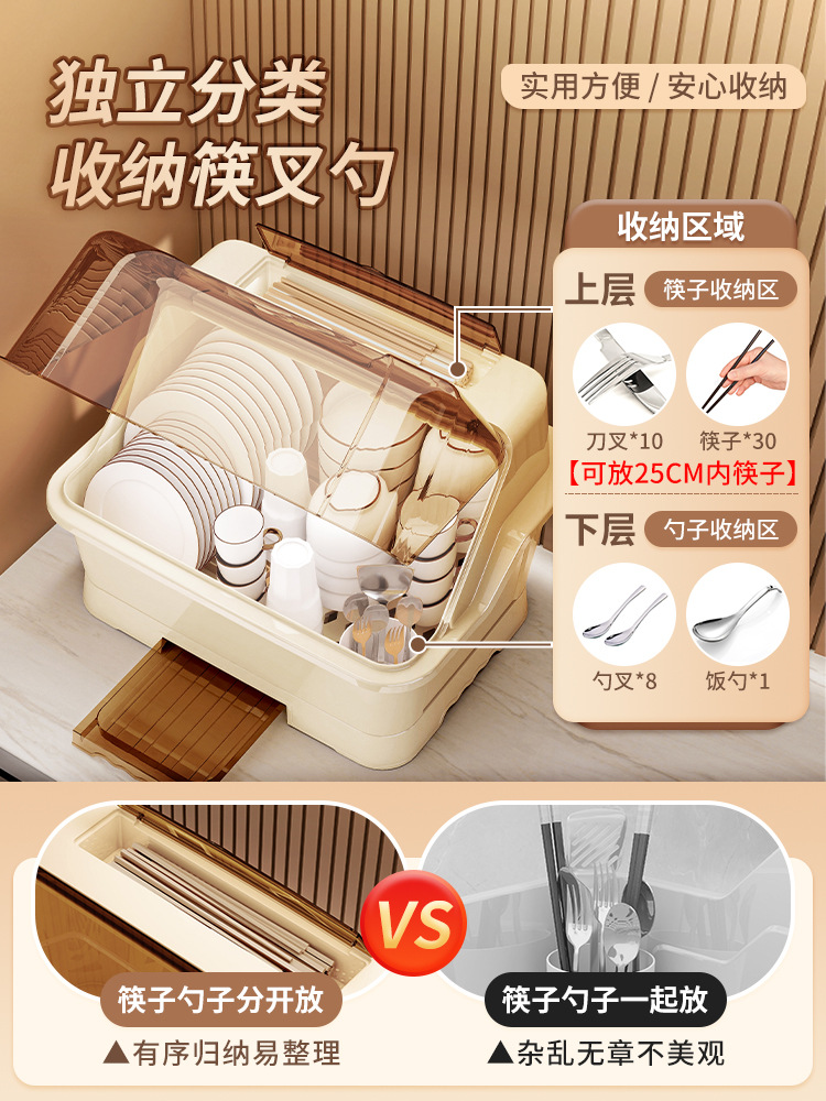 层数(规格)加大号-奶茶色【约2-3人用】防蟑螂防潮顶部筷架升级加厚