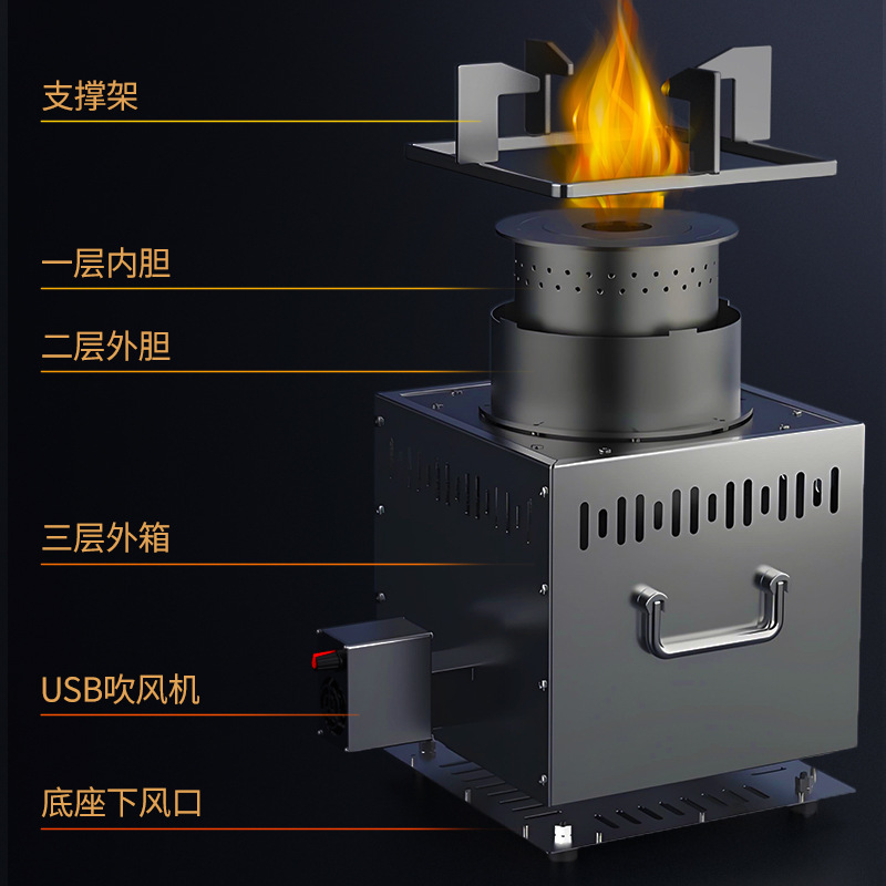 批发木柴无烟节能气化炉炉具猛火烧便携式旅行家用野营户外柴火炉