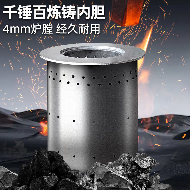 升级加厚不锈钢内胆【大号】防风+隔热+炉膛可取+豪华套装出风管