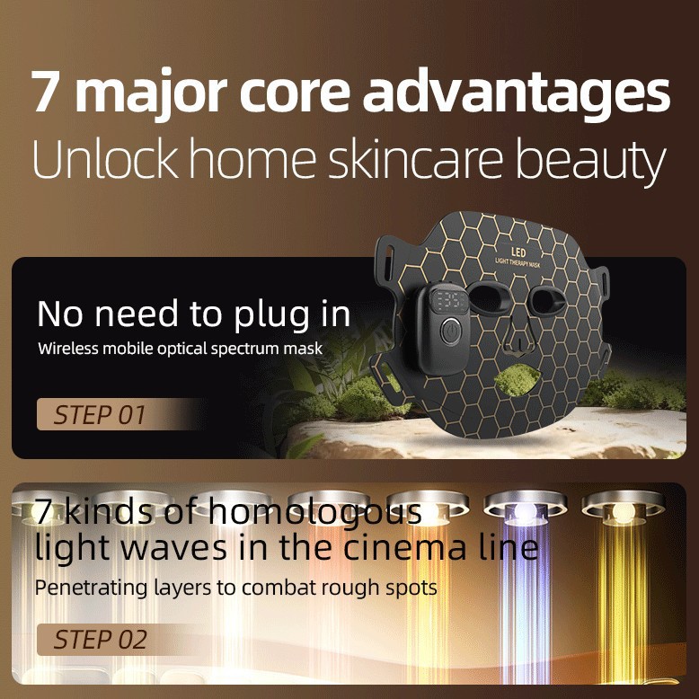 七色彩光家用硅胶LED大排灯淡化皱纹控油红光面膜仪私模直销跨境
