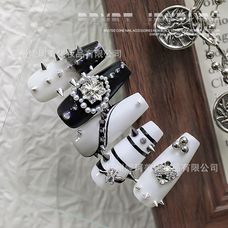 跨境欧美朋克铆钉饰品金属尖锥朋克风平底实心半圆钢珠diy配饰钻