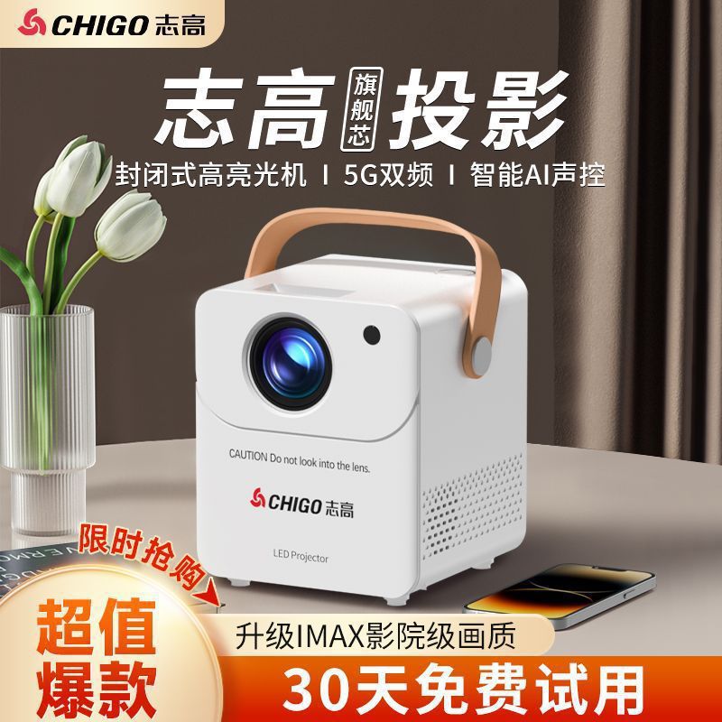 志高2024新款投影仪家用高清超清卧室学生宿舍可连手机投屏小型5G