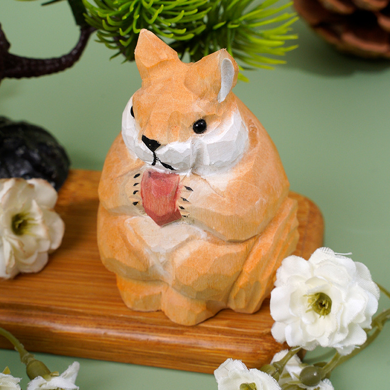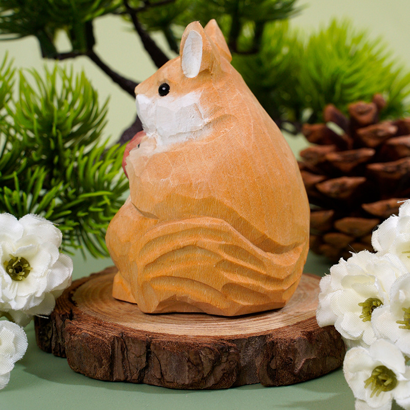 木雕工艺品批发手工雕刻彩绘木雕小松鼠动物儿童玩具桌面摆件木雕