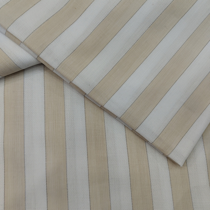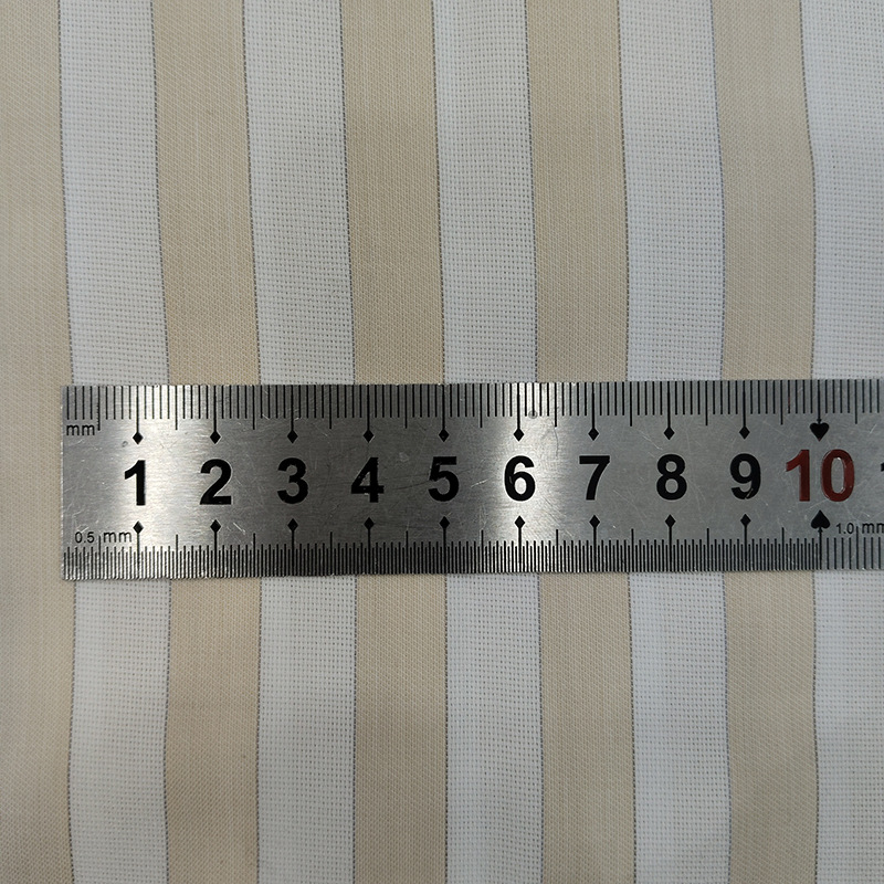 现货全棉色织杏色条纹衬衫面料 全棉条子时装布料