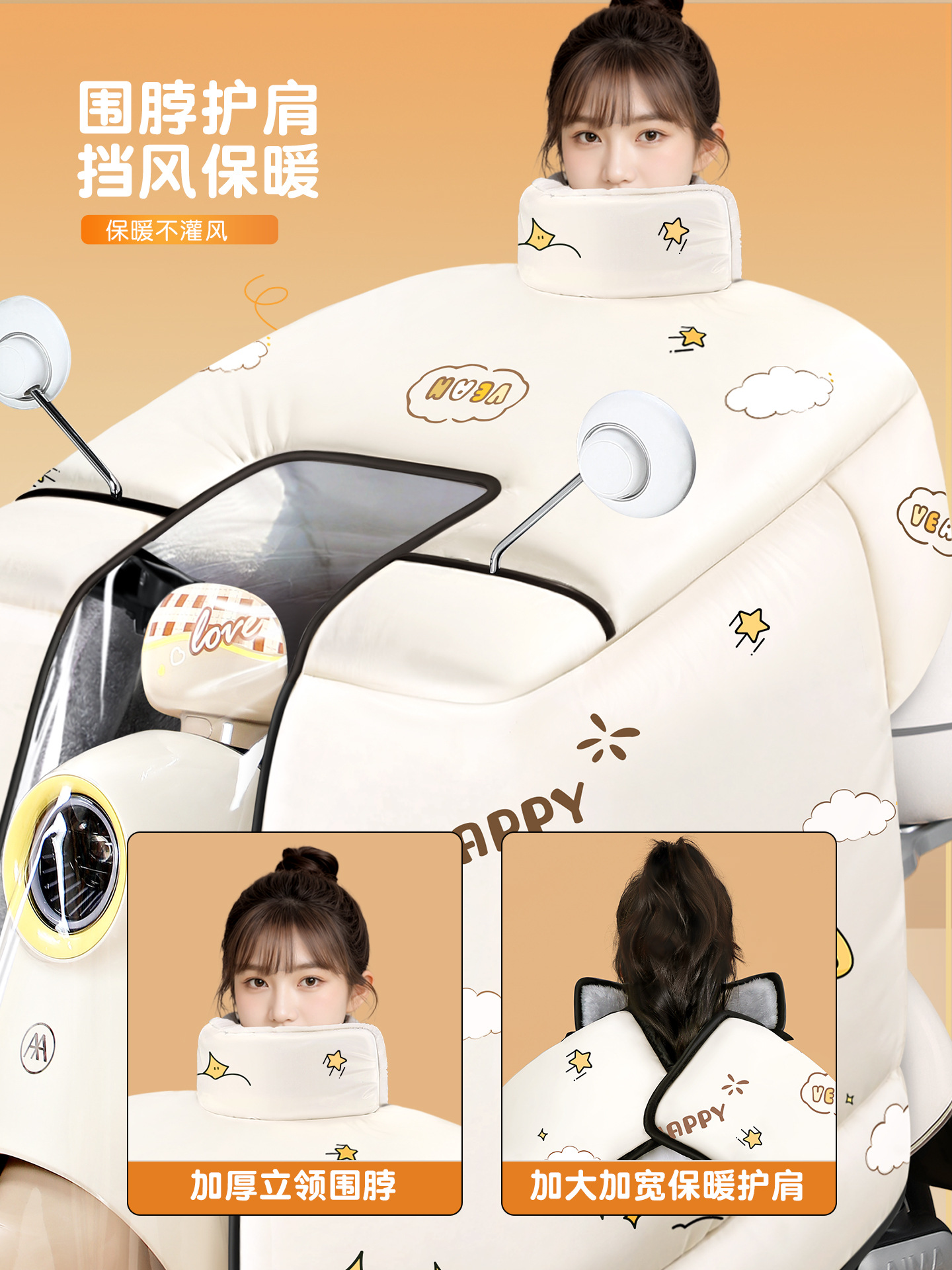 颜色 | 米白--云端探险【护肩围脖+侧翼加宽-加绒加厚】全包款 | 颜色 | 卡其奶茶小熊【侧翼加宽-网面把套】防晒款 |