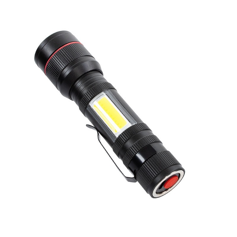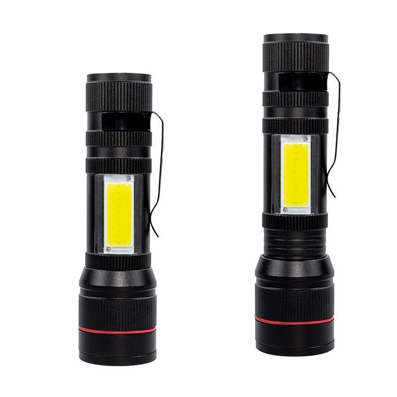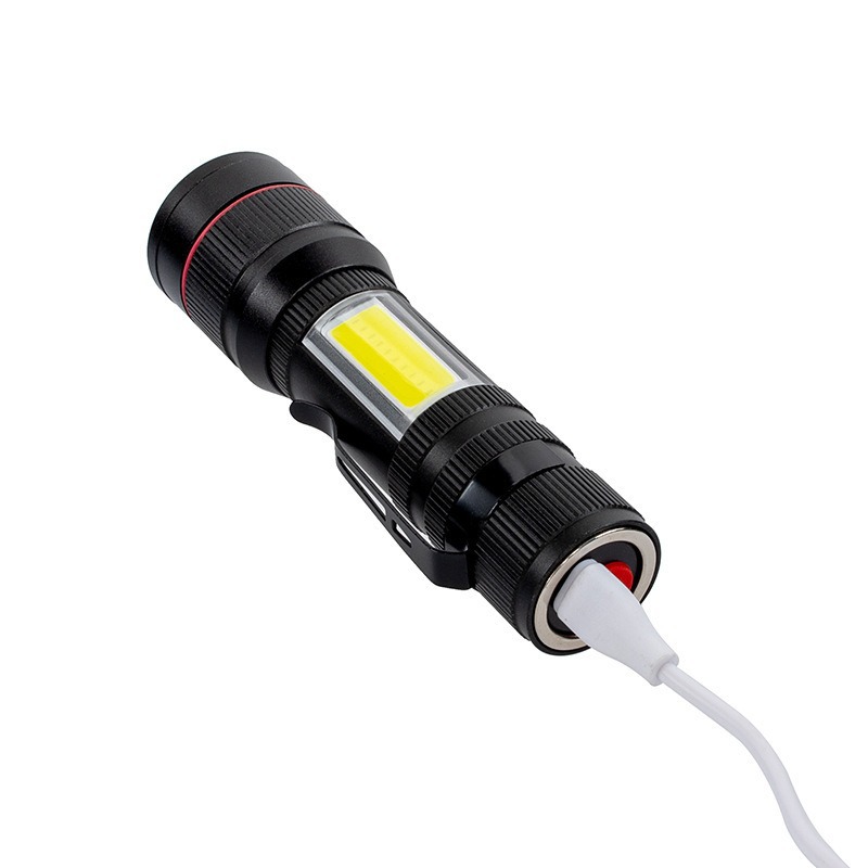 T6强光手电筒内置锂电池USB充电带侧灯手电筒 COB变焦工作灯批发