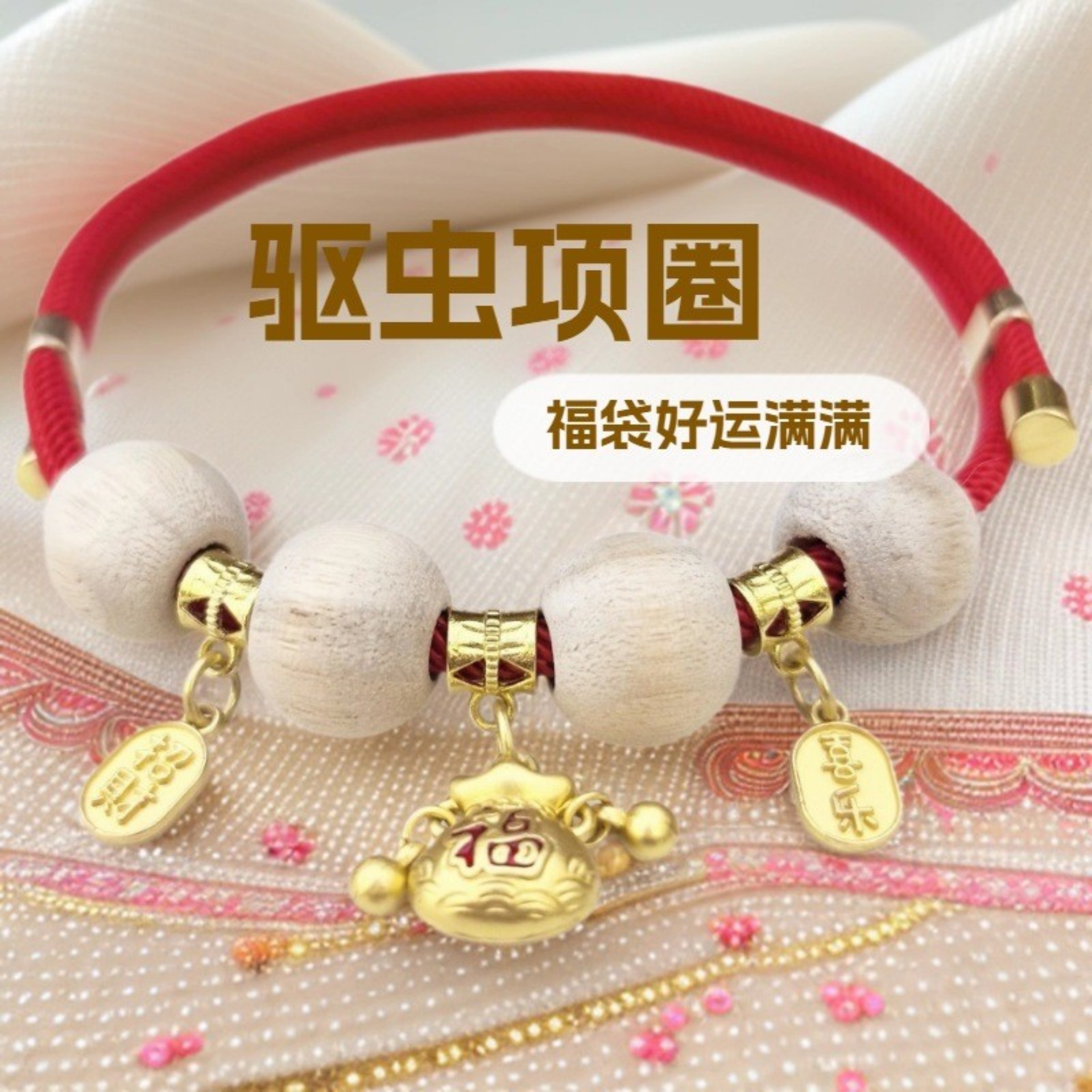 | 颜色 | 红绳金色串珠铃铛 | 材质 | 涤纶 |