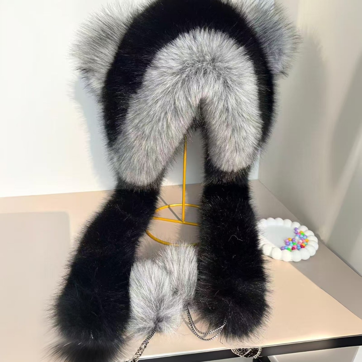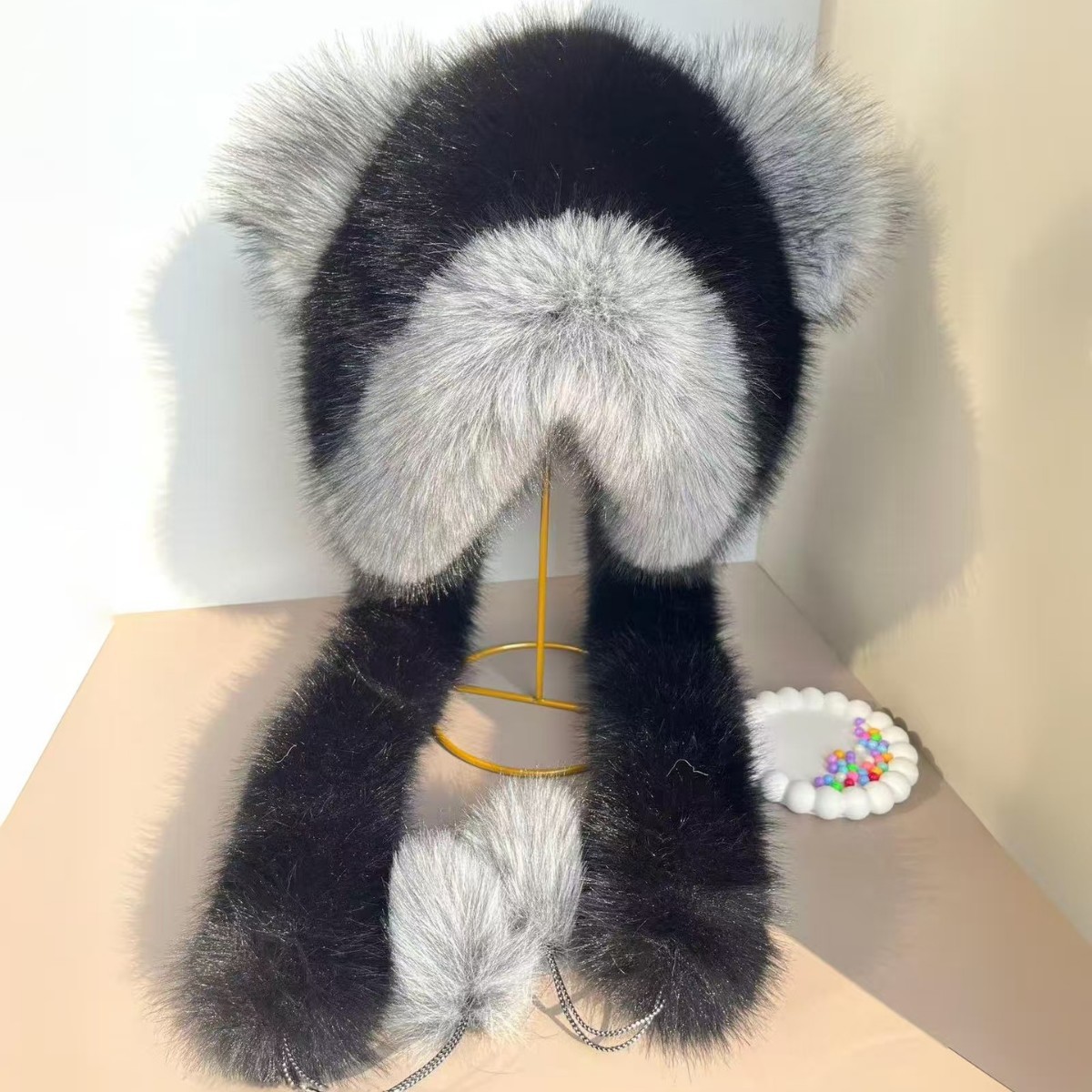 特厚抗寒款毛绒帽子冬季新款户外防寒保暖帽子围脖一体小熊帽子女