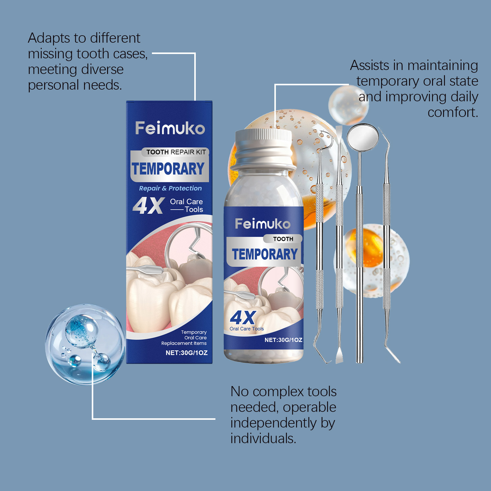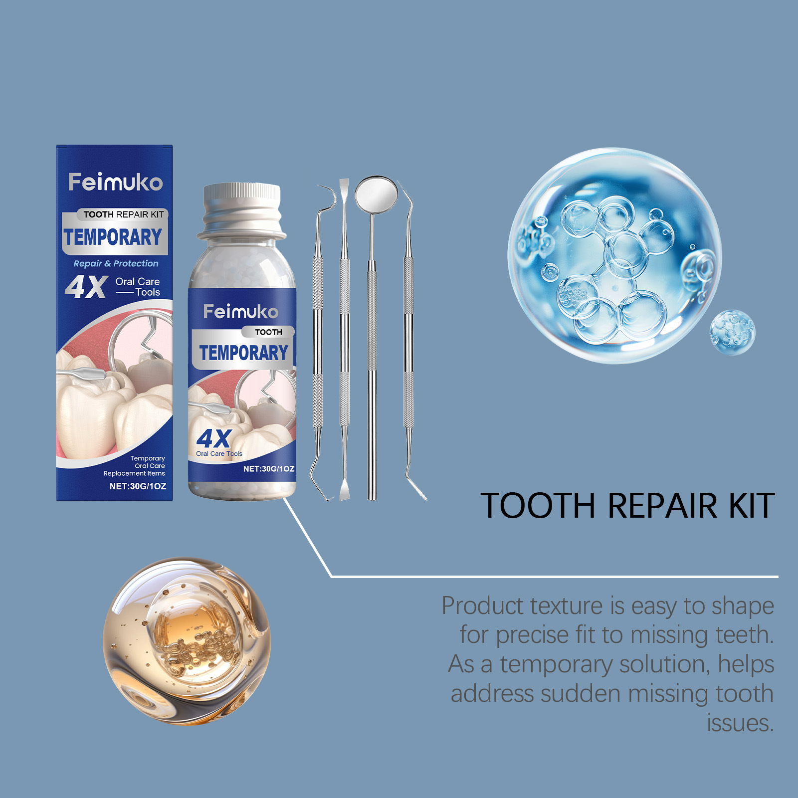 Feimuko临时牙齿护理套件 可塑性牙胶笑容美观日常口腔临时护理