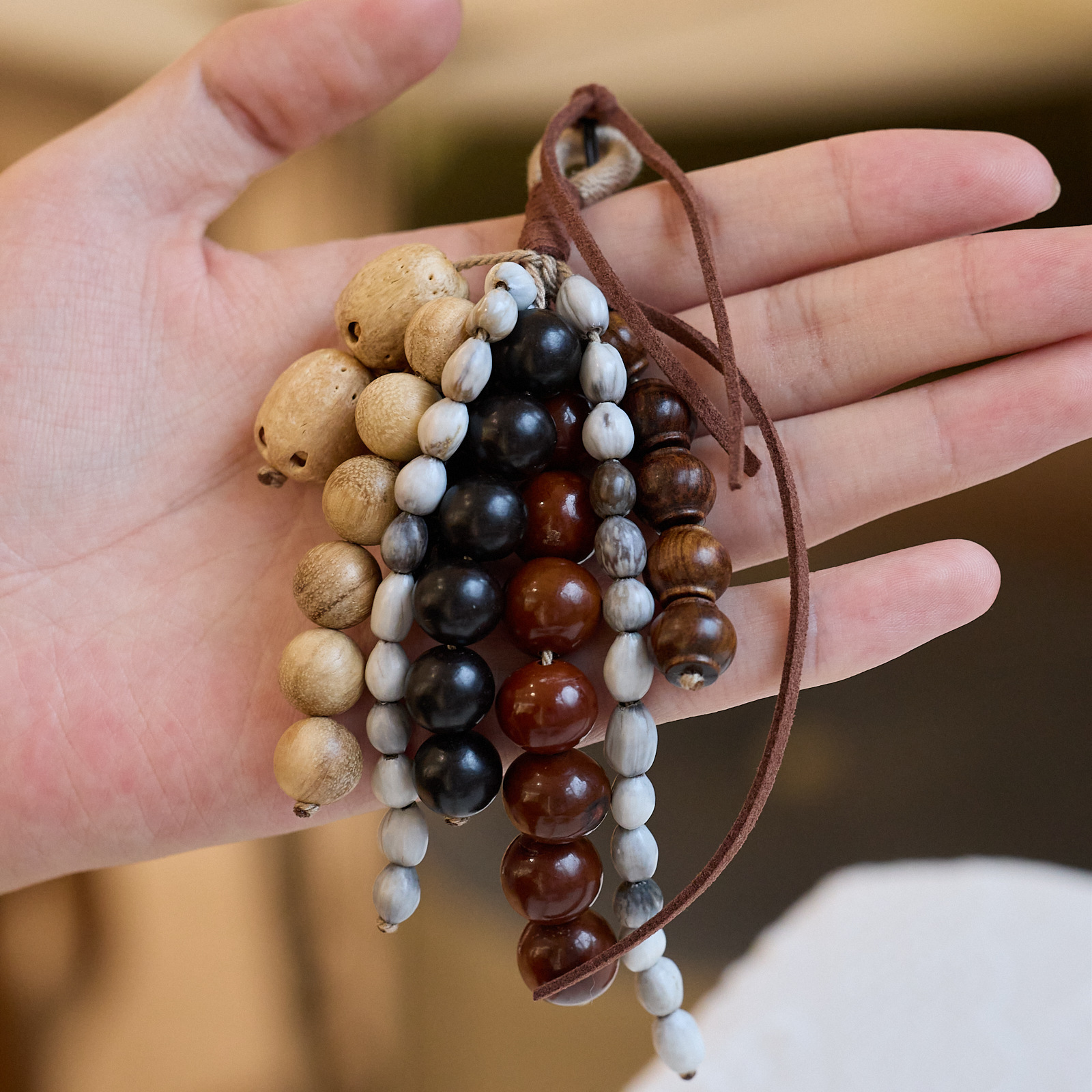 | 颜色 | 3-【满愿】满愿种子串 天然果壳摇铃包挂 | 颜色 | 4-【秋实硕果】天然果壳风铃 白玉菩提 包挂 |