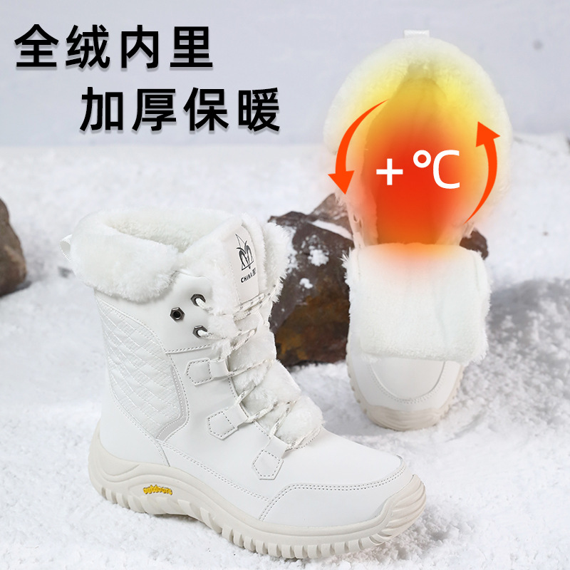 雪地靴女冬户外中筒漠河棉靴加绒加厚高帮东北大棉鞋户外女生厚底