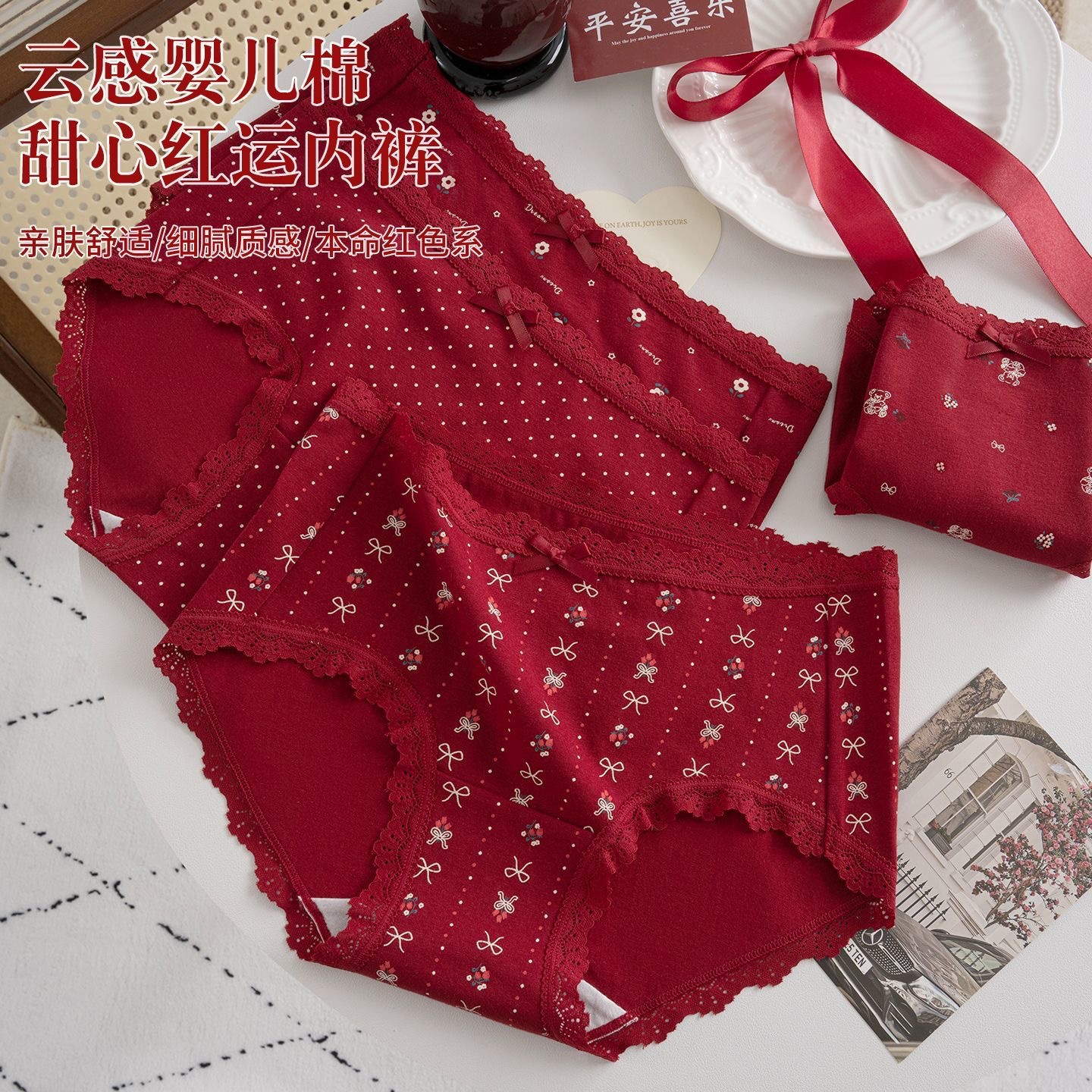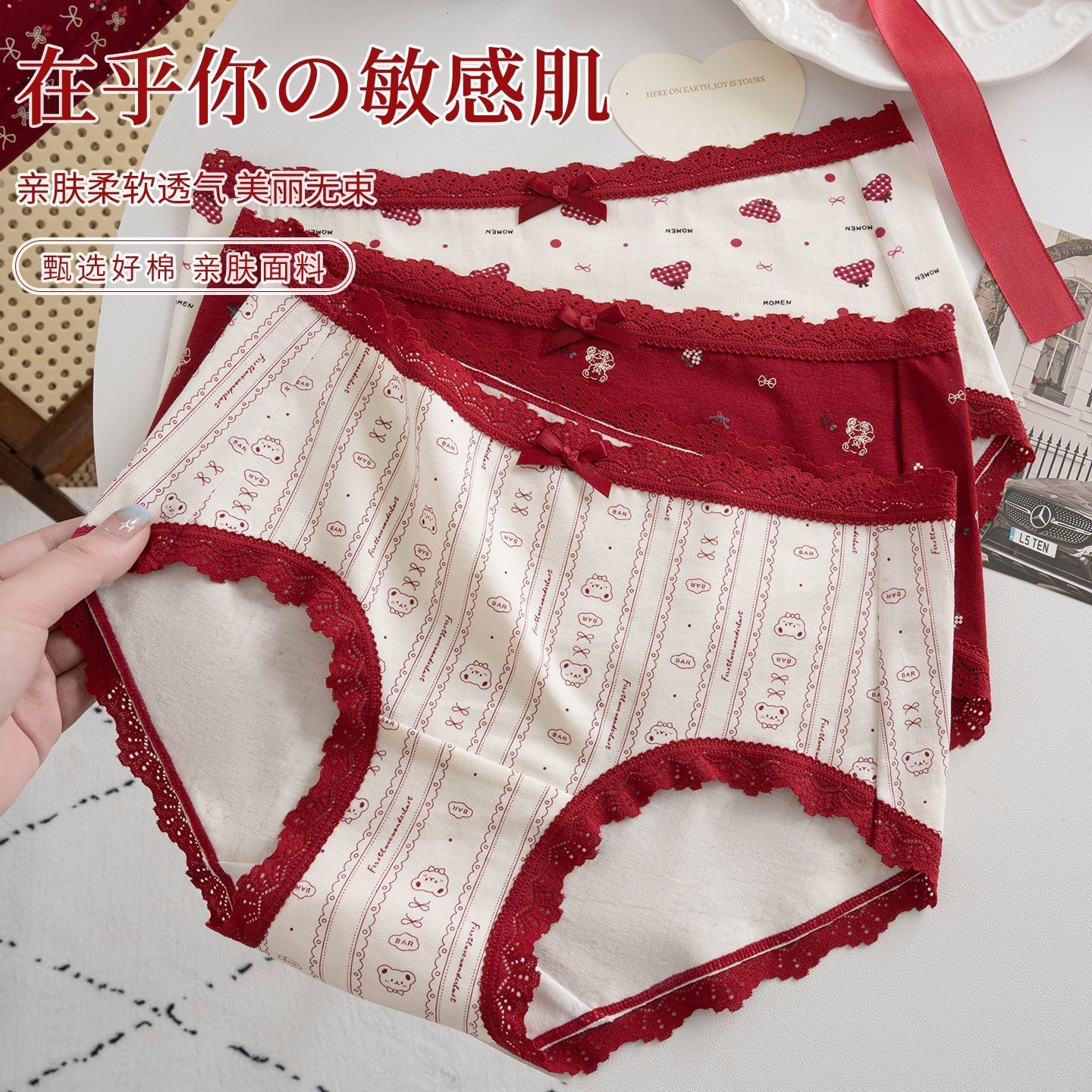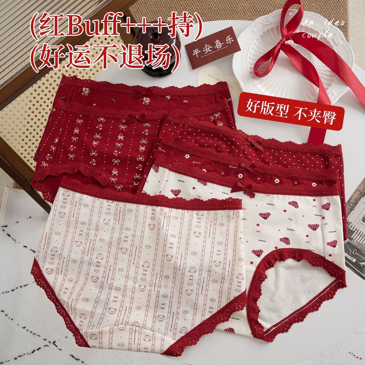 红运内裤云感纯棉裆暴富本命年结婚喜庆加长档大码蕾丝中腰