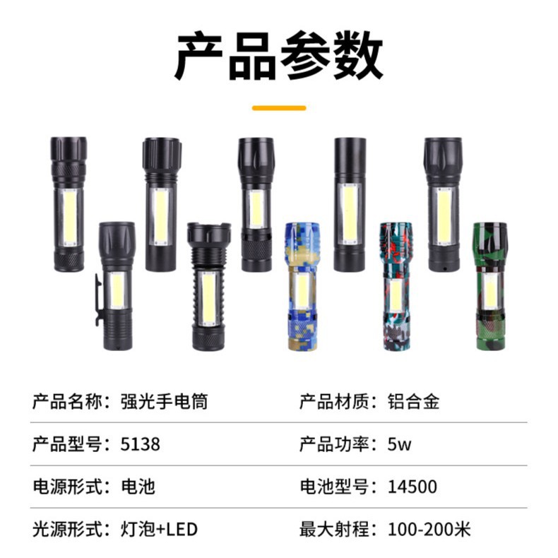 迷你户外强光充电手电筒COB侧灯铝合金led塑料便携511小手电筒