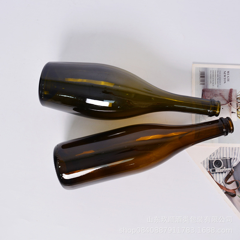 厂家生产晶白料750ml洋酒玻璃瓶空酒瓶红酒瓶勃艮第棕色大肚香槟