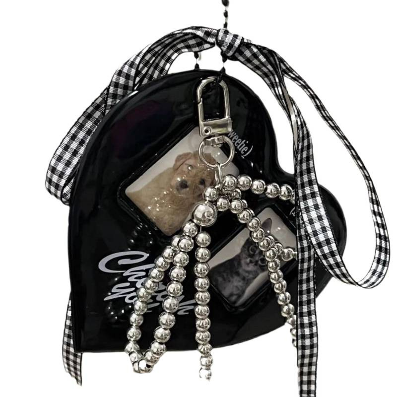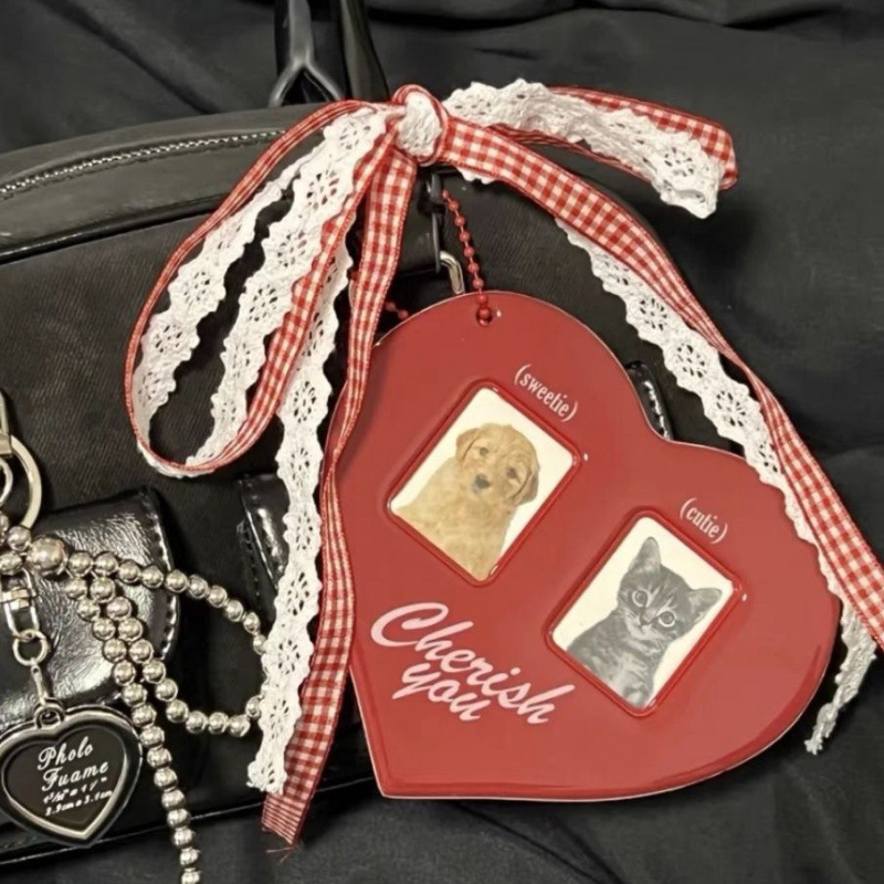 红格子情侣照片爱心卡套挂件蝴蝶结寸卡展示闺蜜大头贴收纳套包邮