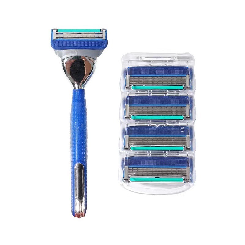 外贸热销 五层手动剃须刀刮胡刀男士刮胡胡须刀4个装5层刀头刀片