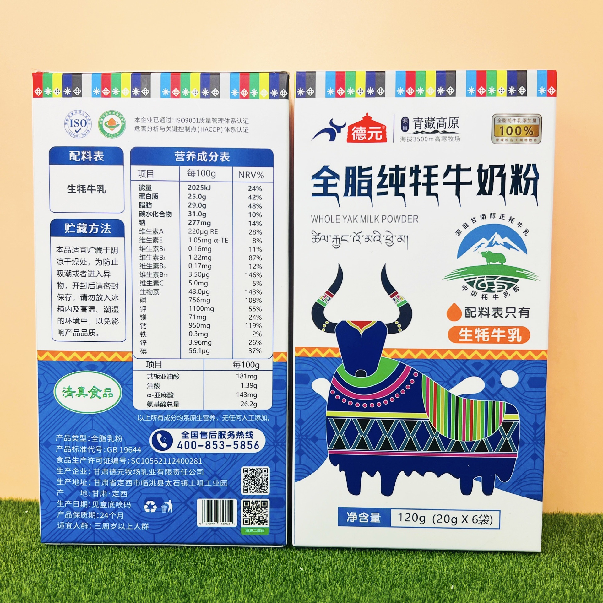 德元全脂纯牦牛奶粉三周岁以上青少年中老年120g盒装甘肃产地高原