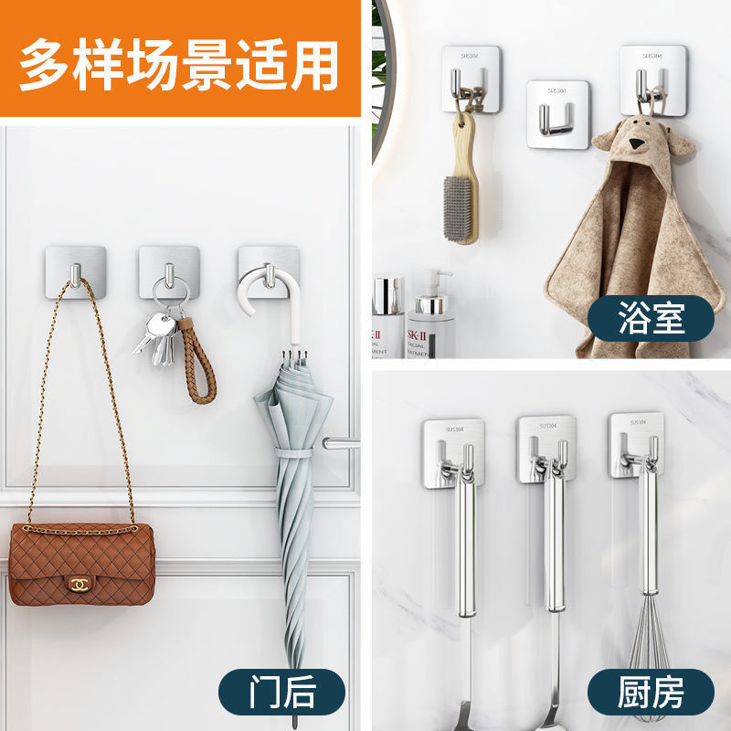挂钩强力粘胶免打孔厨房浴室门后贴无痕粘钩承重不锈钢钩子粘贴