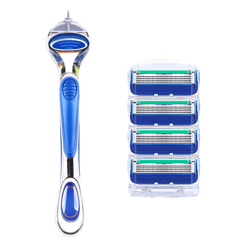 现货 批发外贸蓝色五层刀片5层剃须刀手动刮胡刀头通用吉利跨境热