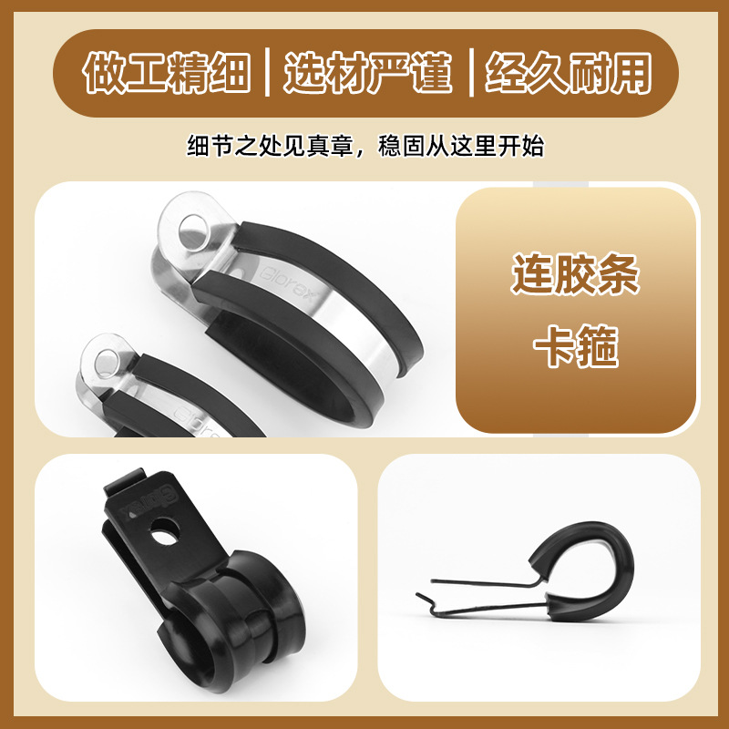 天津连胶条卡箍喉箍R型固定管夹U型电缆电线连胶条箍批发