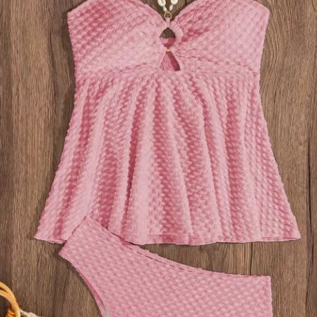 新款欧美跨境亚马逊热卖性感挂脖系带三点式比基尼沙滩度假泳衣女