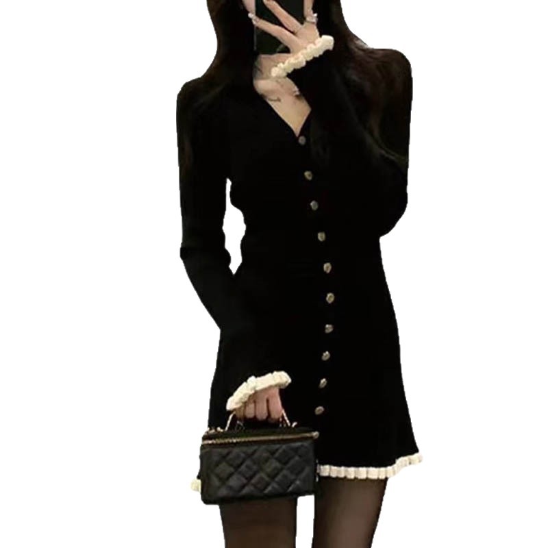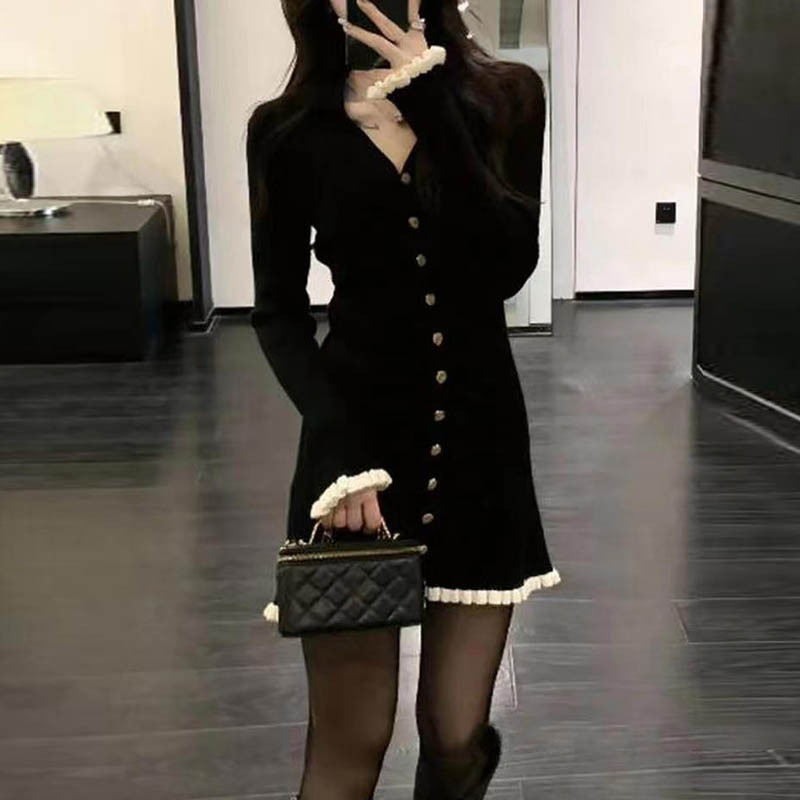 | 1 | 法式v领小香风收腰针织连衣裙秋冬新款女装高气质修身打底小黑裙性感V领毛衣裙撞色收腰显瘦长袖针织连衣裙 | 货源类型 | 源头工厂 |