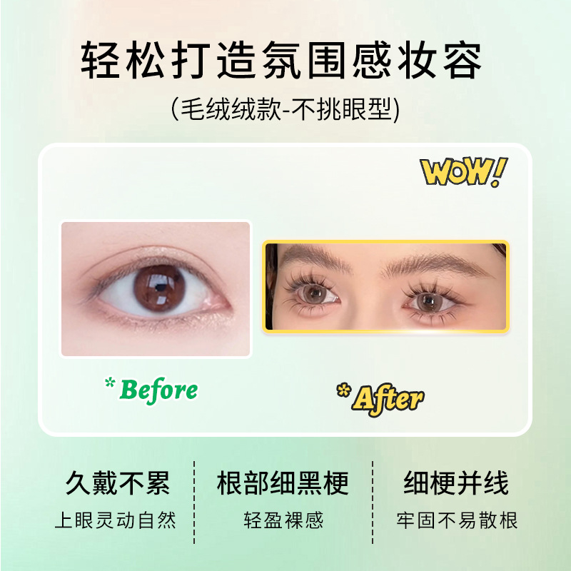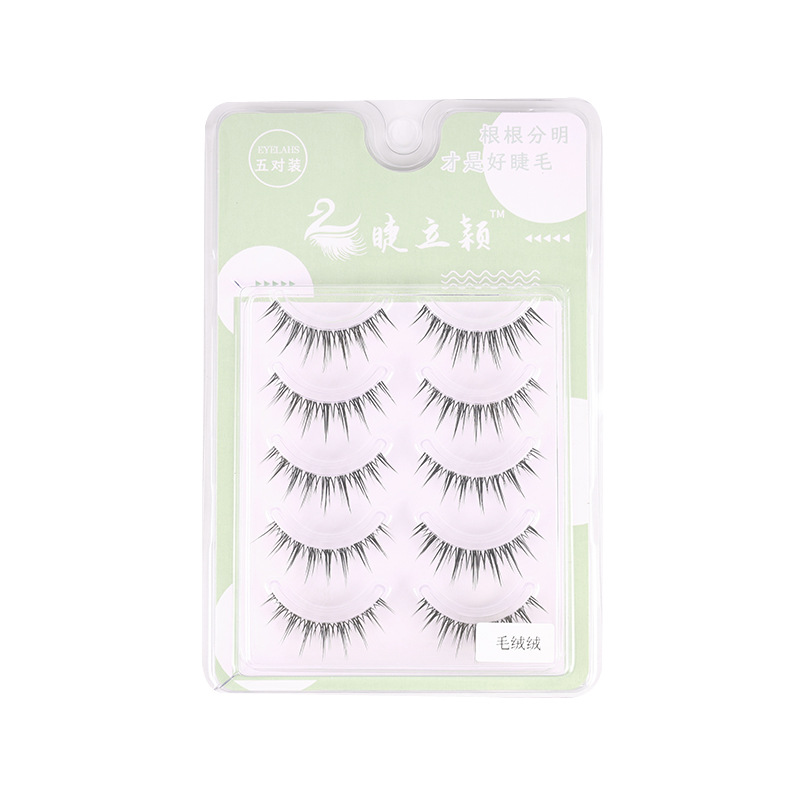 睫立颖毛绒绒上睫毛整簇妈生感自然仿真细梗卷翘批发5对装假睫毛