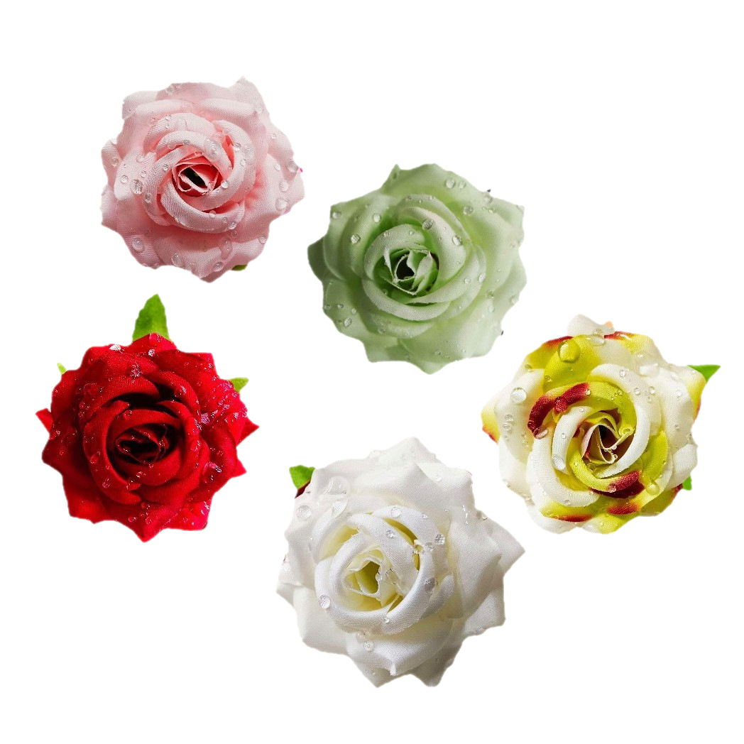 6厘米露珠玫瑰水滴五角玫DIY手腕花玫瑰花头礼盒装饰假花手工