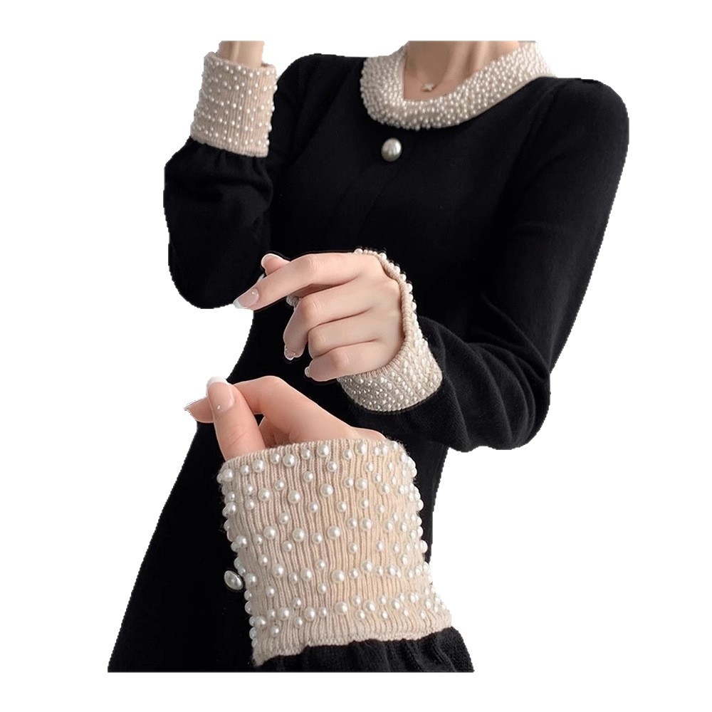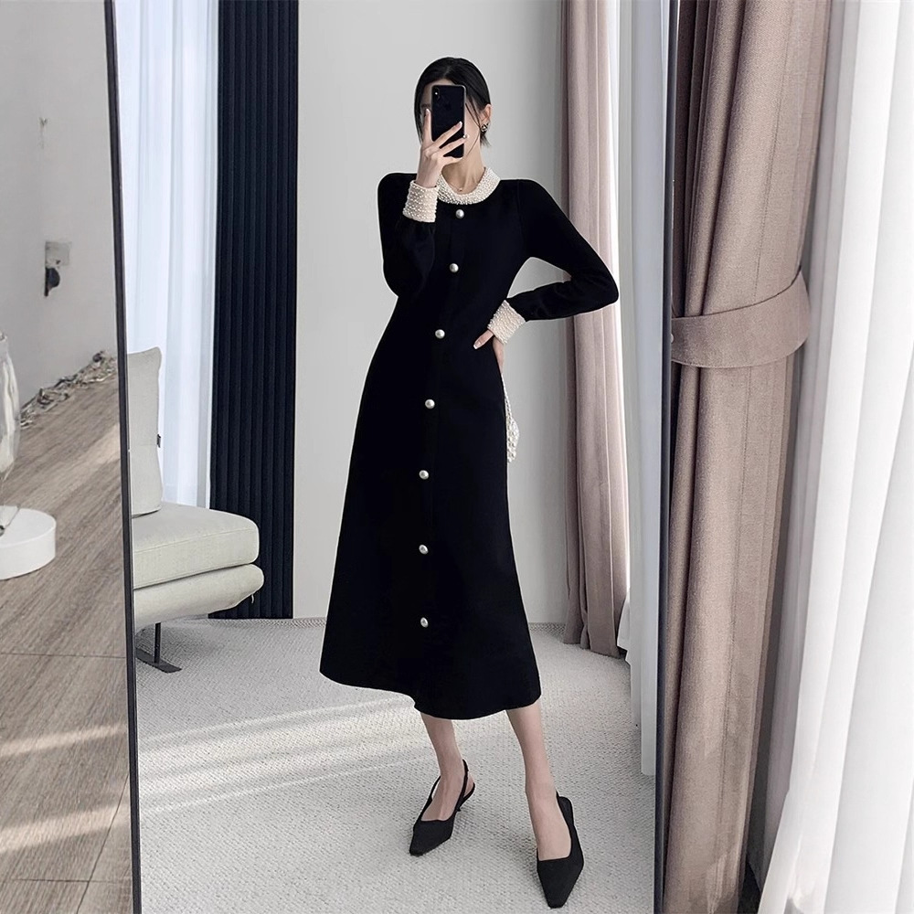 | 3 | 重工珍珠黑色针织连衣裙女秋冬新款感法式复古赫本风长裙 | 1 | 法式小香风连衣裙秋冬季名媛气质轻奢感收腰显瘦时尚长袖裙子 |
