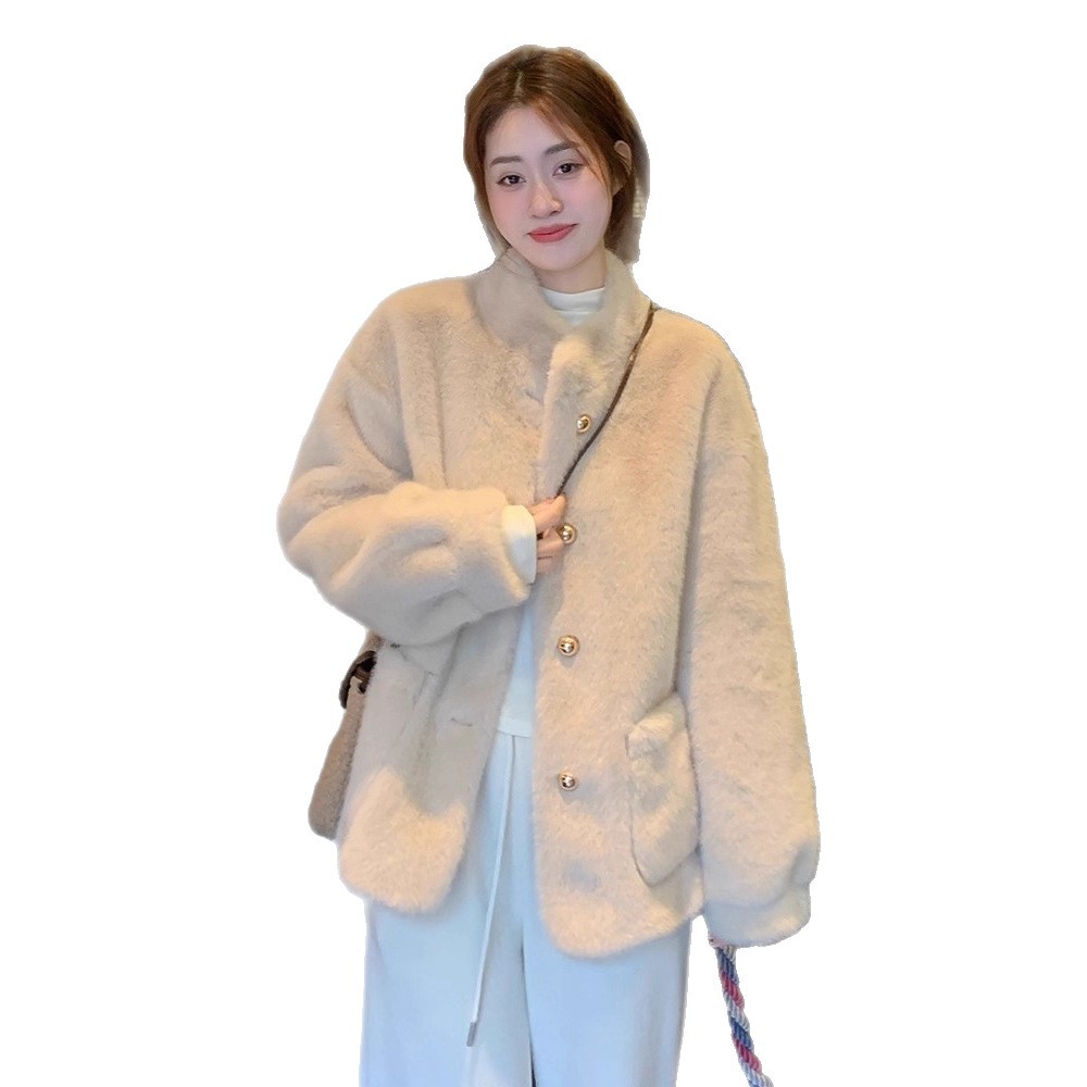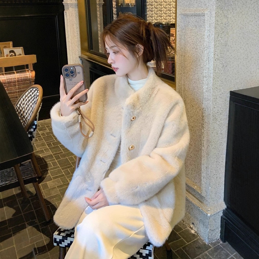 小香风立领皮草女冬季仿水貂毛绒环保新款高级感上衣毛毛显瘦外套