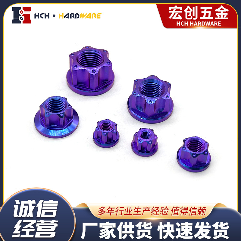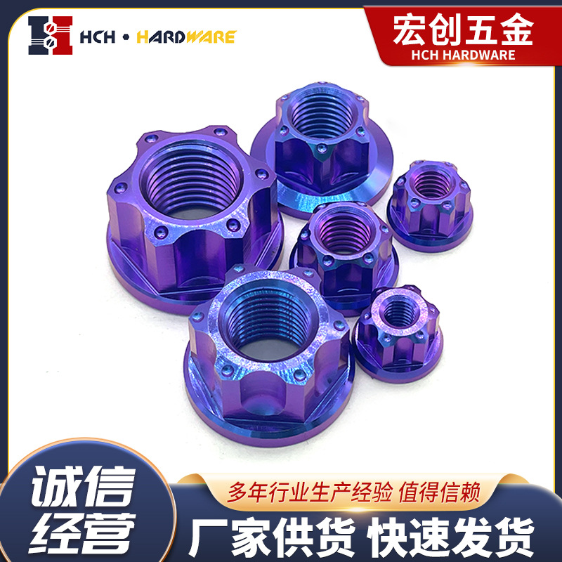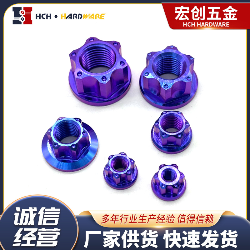 厂家批发钛合金螺母TC4钛合金法兰螺母防松圆帽滚花锁紧螺母