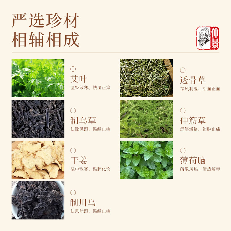 艾叶、透骨草、制川乌、制首乌、伸筋草、干姜、薄荷脑